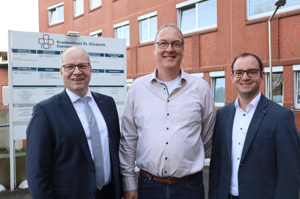 „Das erfreuliche Wachstum unseres Hauses machte die Einrichtung dieser neuen Stelle erforderlich”, so Geschäftsführer Michael gr. Hackmann, der Volker Schnier gemeinsam mit Pflegedienstleiter Thomas Tönsing herzlich am Dammer Krankenhaus begrüßte und ihm einen guten Start wünschte.