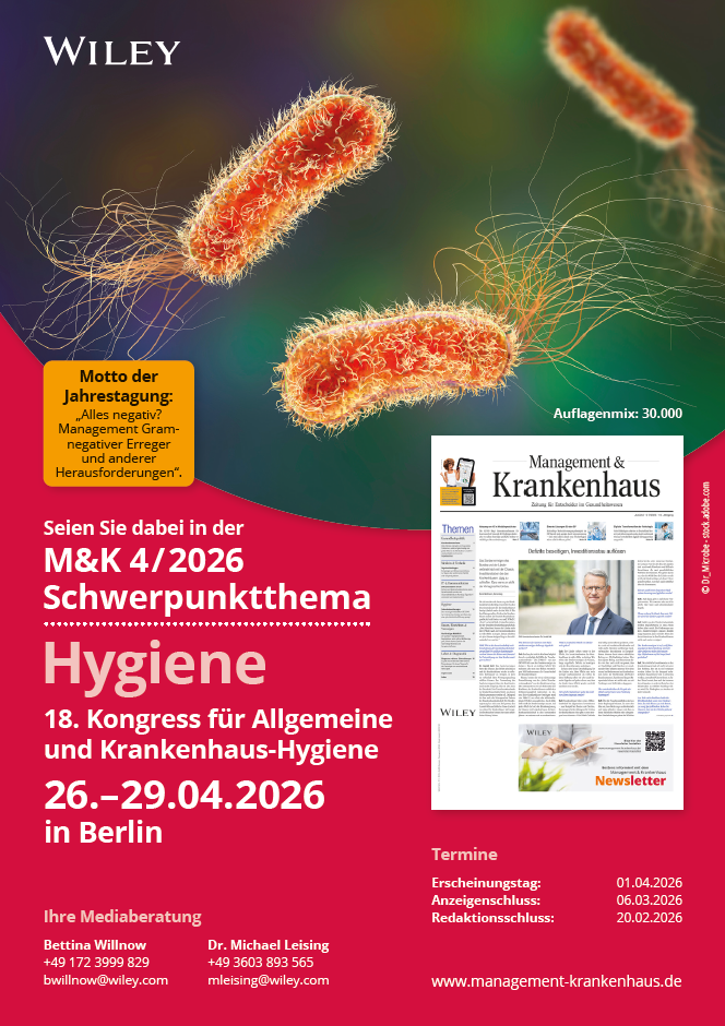 Die Fachzeitung Management & Krankenhaus widmet sich im April den Herausforderungen in der Krankenhaushygiene mit dem Schwerpunkt Hygiene zum 18. Kongress für Allgemeine und Krankenhaus-Hygiene in Berlin.