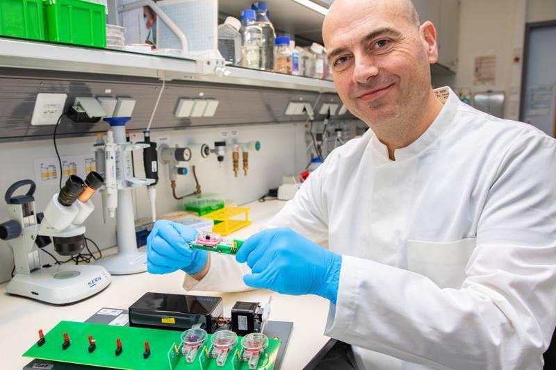 Auch in menschlichem Gewebe zeigte sich dieser schützende Effekt. Dafür nutzten die Forschenden induzierte pluripotente Stammzellen (IPSC). Das sind genetisch umprogrammierte Körperzellen, die ähnliche Eigenschaften wie embryonale Stammzellen haben, sich also in alle Gewebetypen entwickeln können – in diesem Fall in Makrophagen. Das Besondere: Bei ihnen wurde der entzündungsfördernde molekulare Schalter circHIPK2 deaktiviert. „Wir haben die circHIPK2-modulierten menschlichen Makrophagen in Herzgewebe von Patientinnen und Patienten mit Herzinsuffizienz getestet“, sagt der Kardiologe. Dafür nutzten die Forschenden die Methode der „lebenden Herzschnitte“. Das Material dafür stammt aus der MHH-Klinik für Herz-, Thorax-, Transplantations- und Gefäßchirurgie und ist sozusagen Gewebeabfall aus nicht mehr funktionierenden Herzen, die im Rahmen einer Transplantation entnommen wurden. In Nährlösung leben und schlagen diese Herzmuskelscheiben für viele Tage bis zu Wochen weiter.