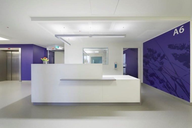 Für das innovative Gestaltungskonzept „Wege der Heilung“ wurden Sander Hofrichter Architekten 2012 mit dem AIT Healthcare Application Award ausgezeichnet. Grafisch umgesetzte Pflanzenthemen und vier zugehörige Leitfarben helfen den Patienten und Besuchern, sich problemlos zurechtzufinden. Die Farbe Grün kennzeichnet die Behandlungsräume im Sockel, während die Farben Rot, Gelb und Violett sich auf die zugehörigen Heilpflanzen Hibiskus, Ringelblumen und Lavendel beziehen und den Weg zu den drei Bettenhäusern weisen.
