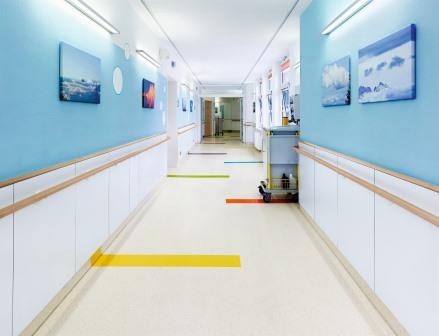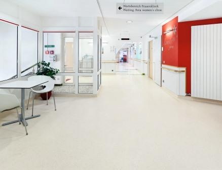 „In vielen Bereichen unseres Krankenhauses liegen schon seit Jahrzehnten Böden von nora, wir haben gute Erfahrungen damit gemacht", berichtet der Technische Leiter der Paulinen Klinik, Franz Josef Gläßer. Die extrem verschleißfesten Kautschuk-Beläge mit ihrer dichten, geschlossenen Oberfläche sind für Gesundheitseinrichtungen ideal: Sie lassen sich leicht reinigen, sind beständig gegenüber Flächendesinfektionsmitteln und fleckunempfindlich. „Daher planen wir auch, bei anstehenden Renovierungsmaßnahmen andere elastische Bodenbeläge nach und nach durch Kautschuk zu ersetzen."