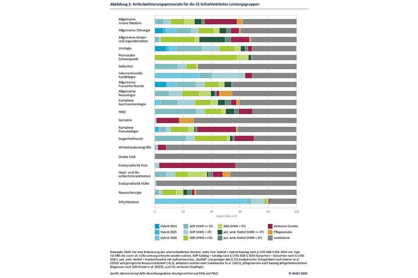 02.12.2025 - Eine heute veröffentlichte Analyse des Wissenschaftlichen Instituts der AOK (WIdO) zeigt ein großes Potenzial für die ambulante Versorgung von Fällen, die derzeit noch in deutschen Krankenhäusern stationär behandelt werden.