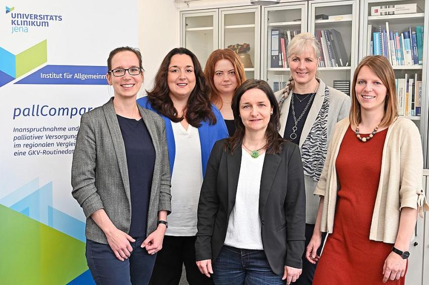 Im Projekt pallCompare erstellte ein Forschungsteam um PD Dr. Antje Freytag des gemeinsam mit der Barmer und der Abteilung für Palliativmedizin des UKJ einen Monitor für die palliativmedizinische Versorgung in Deutschland. Das auf den Routinedaten der Krankenkasse beruhende System ermöglicht den regionalen Vergleich von Nutzung, Qualität und Kosten medizinischer Versorgung am Lebensende und kann damit eine Entscheidungsgrundlage für die Weiterentwicklung palliativer Versorgungsstrukturen bilden. Das vom Innovationsausschuss beim Gemeinsamen Bundesausschuss geförderte Projekt wurde jetzt von der Deutschen Stiftung für Allgemeinmedizin und Familienmedizin mit dem Hauptpreis des Dr. Lothar und Martin Beyer-Preises ausgezeichnet.