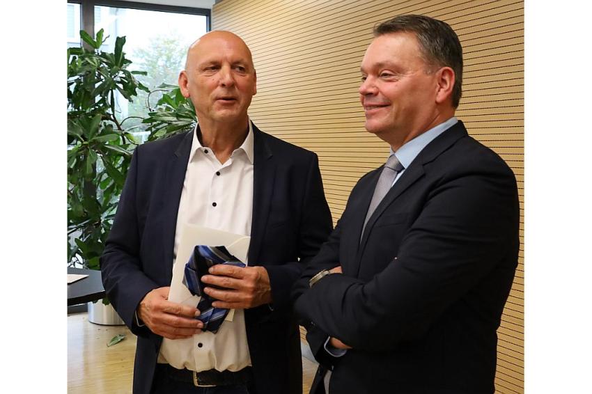 12.11.2025 - Das Caritas-Krankenhaus Bad Mergentheim konnte kürzlich einen doppelten Personalwechsel feierlich begehen: Prof. Dr. Frank Schuster wurde offiziell als neuer Chefarzt der Klinik für Anästhesiologie und Intensivmedizin begrüßt. Er löst Prof. Dr. Hubert Böhrer ab, der nach 24 Jahren in dieser Position in Ruhestand gegangen ist.