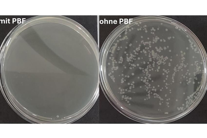 Wissenschaftler des Fraunhofer FEP forschen an einer Technologie zur Herstellung von plasmabehandelten Flüssigkeiten (PBF), die als umweltfreundliche Alternative zu herkömmlichen chemischen Desinfektionsmitteln eingesetzt werden können. In einer aktuellen Studie wird deren Eignung als Oberflächendesinfektionsmittel untersucht. Die Forschungsergebnisse zeigen eine Haltbarkeit von über zehn Monaten und eine gute antimikrobielle Wirksamkeit gegen E. coli.