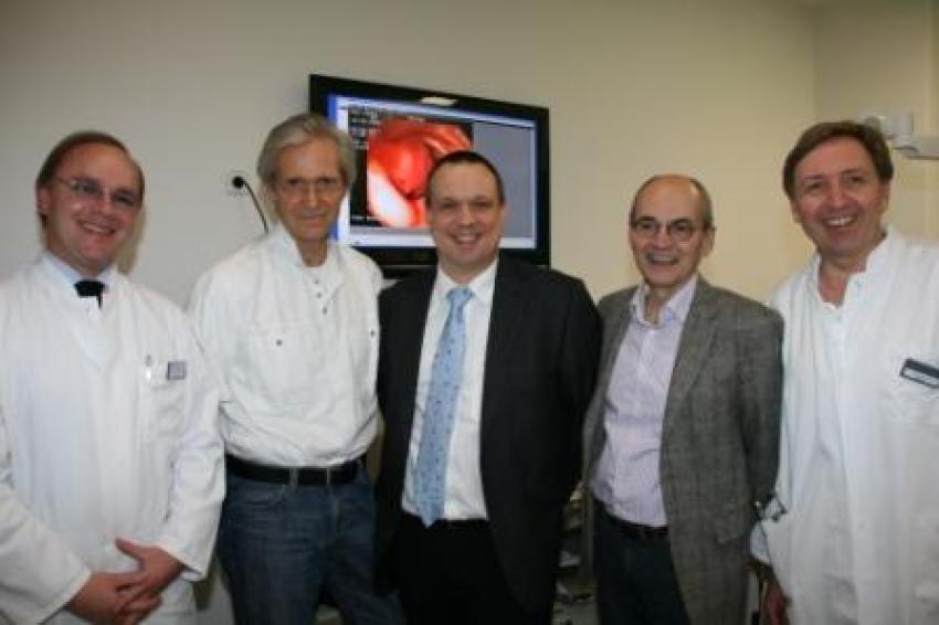 Nicht nur Strahlentherapeuten und Onkologen arbeiten am neuen Standort sehr eng zusammen. Dr. Tilo Mackenroth, Dr. Rupert Botzler und Dr. Eike Burmester unterstützen das Bestreben der Sana Kliniken, sich bald als Darmzentrum zertifizieren zu lassen. Durch die baldige gemeinsame Nutzung von Aufbereitungsgeräten für die Endoskope wird die ambulant-stationäre Zusammenarbeit auf einer Ebene täglich gelebte Praxis. „Die Zusammenarbeit mit diesen exzellenten Gastroenterologen ist für unser Haus eine wertvolle Stärkung", so der neue Chefarzt für Allgemein- und Viszeralchirurgie PD Dr. Sven Eisold.
