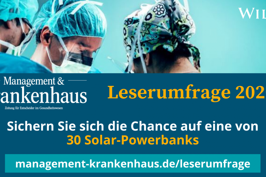 Wir freuen uns, wenn Sie an unserer Leserumfrage teilnehmen würden. Wir möchten den Print- und Onlineauftritt der Fachzeitung Management & Krankenhaus weiter verbessern. Daher wollen wir Ihre Ansprüche an unserer Fachzeitung (Print und Online) besser kennenlernen.