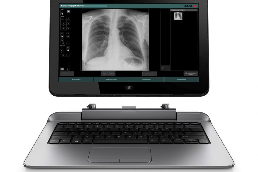 Die Erfahrung lehrt, dass der Wechsel von der analogen oder computergestützten (CR) zur Direktradiographie (DR) eine sinnvolle Investition ist. Mit der ultramobilen DR Retrofit-Lösung von Agfa HealthCare können vorhandene Röntgeneinrichtungen einfach und kostengünstig digitalisiert werden. Sie besteht aus einem oder mehreren DR-Flachdetektoren und einer mobilen NX Workstation mit MUSICA-Bildverarbeitungssoftware. Die NX Workstation kann dabei für ortsfeste Anwendungen als Laptop mit Dockingstation und für mobile Anwendungen flexibel als Tablet genutzt werden.